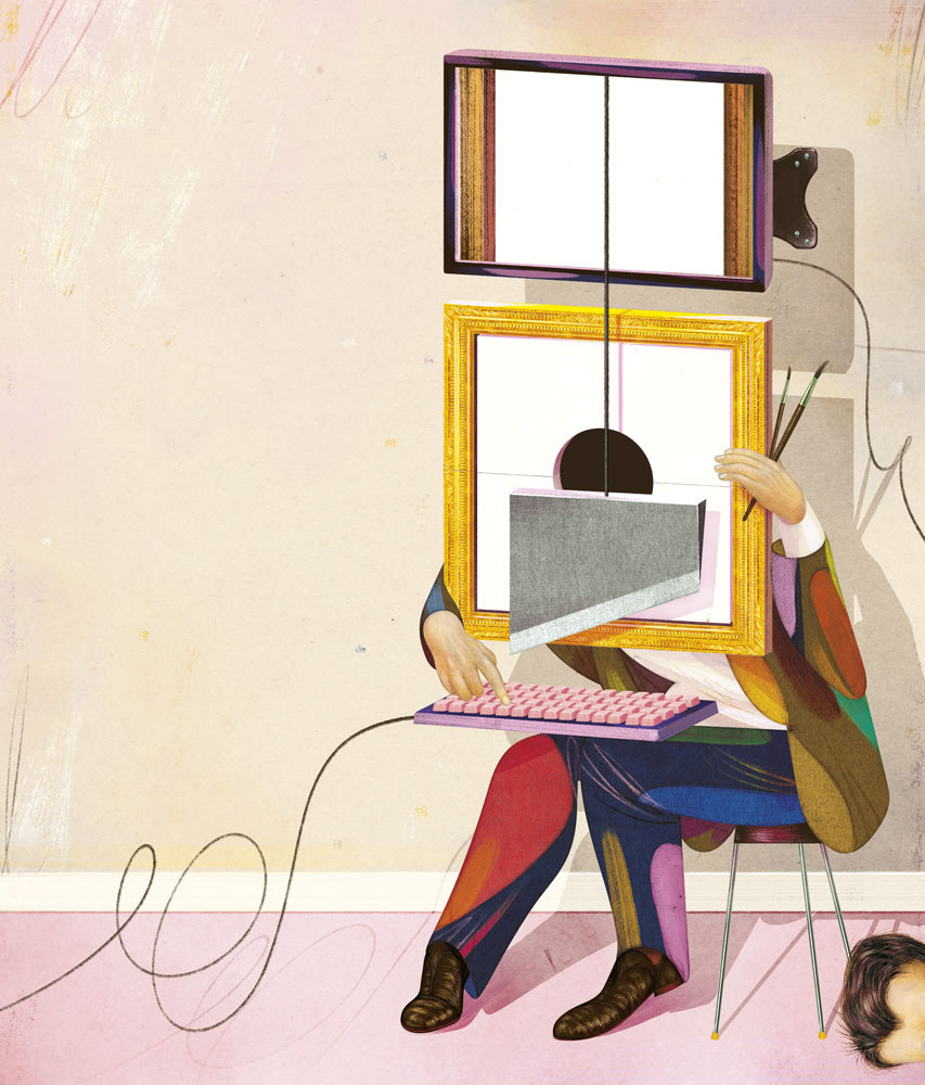 Público. I was invited to illustrate an essay by José Gil about what artificial intelligence might mean for the future of art and artists (or, more broadly, humanity). I was free to convey my own take on the matter. Truth be told, I’m not feeling very optimistic.