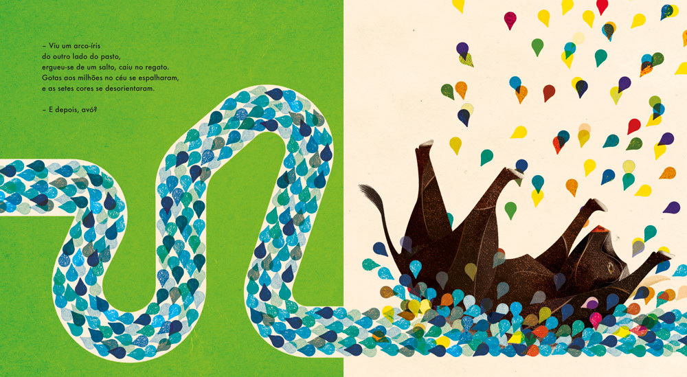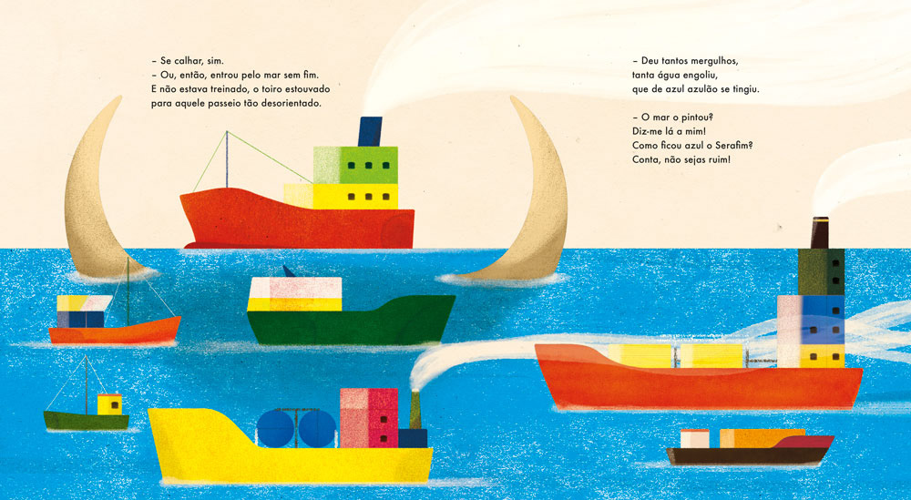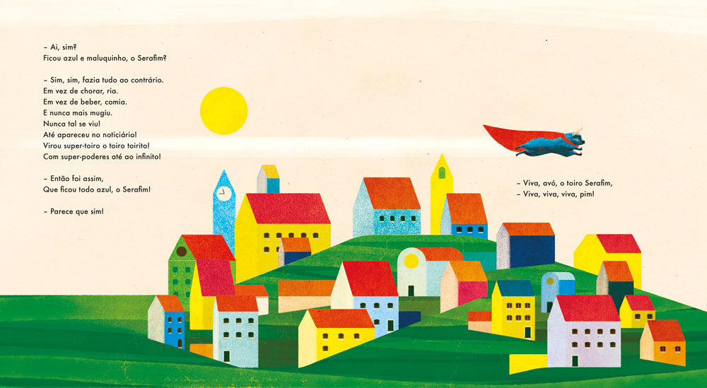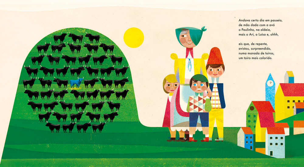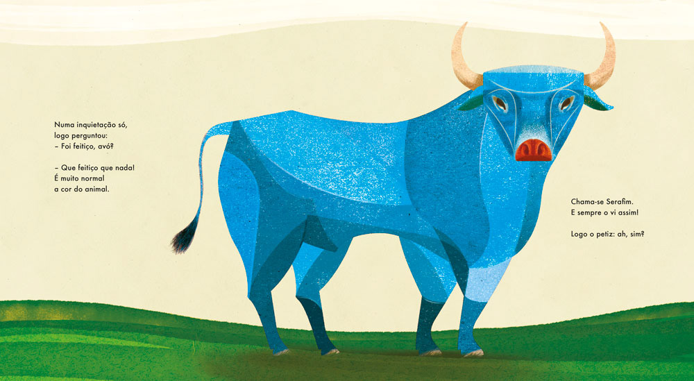 Tcharan. Illustrations for the book "O Toiro Azul" (The Blue Bull), a story by Manuela Costa Ribeiro about a very unusual bull, and how it became that way.