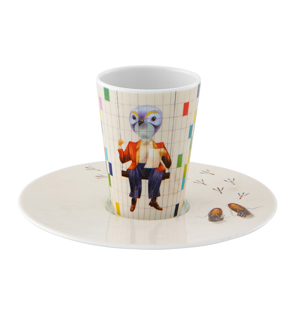 Vista Alegre. Illustration for a special set of coffee cups, to accompany the “Bode Inspiratório (Scapegoat)” project, where 46 writers collectively wrote a book, one chapter each, during the pandemic lockdown. My cup illustrates a chapter by Gonçalo M. Tavares.