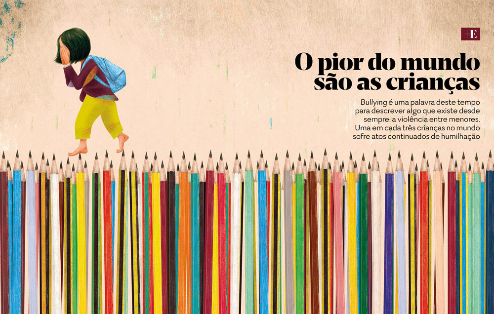 Expresso. Opening spread for an article about school bullying, how some children are singled out and constantly tormented by their classmates.