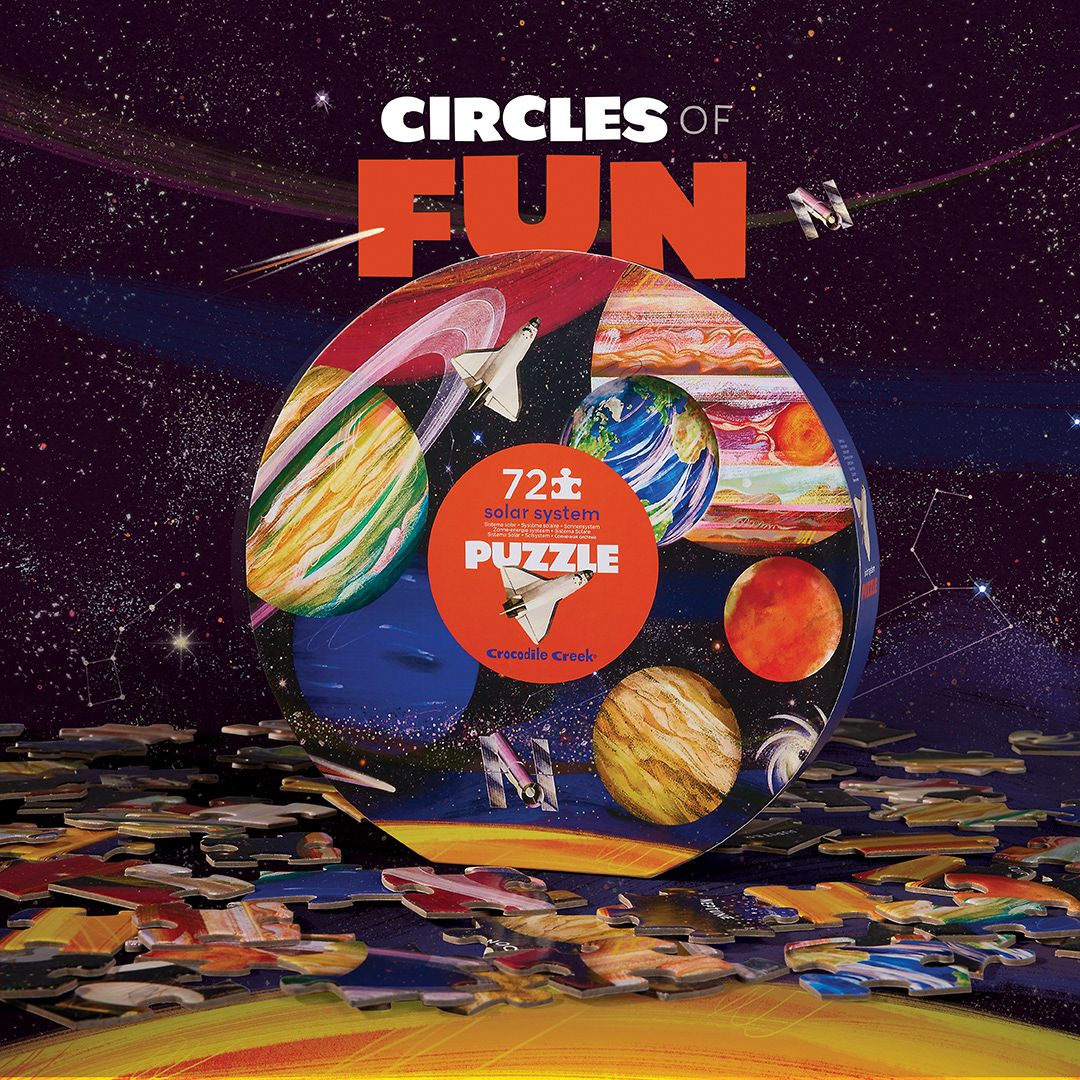 Crocodile Creek. Illustration for a solar system themed family puzzle.